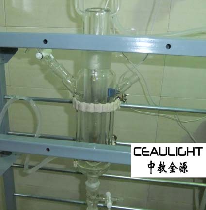 反应液从反应器的上部,通过溢流,液体物料沿玻璃管壁内侧挂壁流下,形成一层液膜。液膜自上而下降落,同时接受 平行放置在管中央的光源的照射。液体向下,流经气体通入单元,汇集于换热器单元。换热器单元可接冷却或加热介质,实现反应的控温。经换热器,反应液体汇入反应液贮存瓶,重新开始循环。